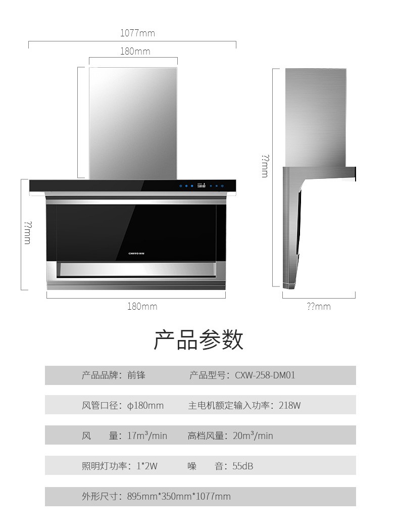 前鋒平板雙吸油煙機DM01