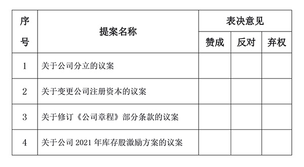 備注:上述審議事項(xiàng),每項(xiàng)均為單選,多選無效;授權(quán)委托書復(fù)印或按以上格式自制均有效。