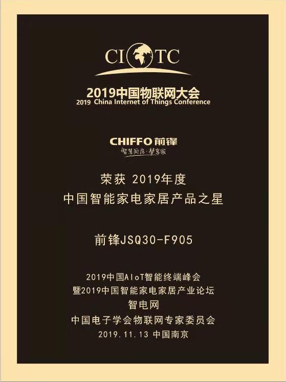 (前鋒零冷水熱水器F905獲2019年度“中國(guó)智能家電家居產(chǎn)品之星”稱號(hào))