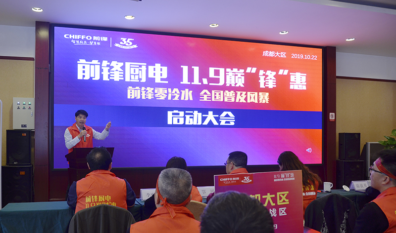 10月22日,前鋒廚電在總部成都召開(kāi)了首場(chǎng)區(qū)域啟動(dòng)大會(huì),拉開(kāi)了全國(guó)活動(dòng)的大幕,宣告前鋒廚電11.9巔“鋒”惠暨零冷水普及風(fēng)暴正式啟動(dòng),隨后將在全國(guó)十七個(gè)省上百座城市陸續(xù)召開(kāi)啟動(dòng)大會(huì),這標(biāo)志著前鋒年末盛惠即將提前打響,在全國(guó)各區(qū)域遍地開(kāi)花。而此次前鋒廚電11.9巔“鋒”惠暨零冷水普及風(fēng)暴也將于10月26日進(jìn)入預(yù)售階段,11月9日當(dāng)天前鋒全國(guó)上千家門(mén)店將集中推出最大優(yōu)惠力度來(lái)普及前鋒零冷水熱水器以及全線廚電產(chǎn)品,為全國(guó)用戶帶來(lái)更舒適的產(chǎn)品體驗(yàn)及更實(shí)惠的購(gòu)物體驗(yàn)。